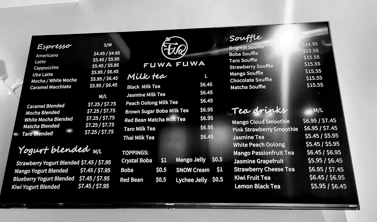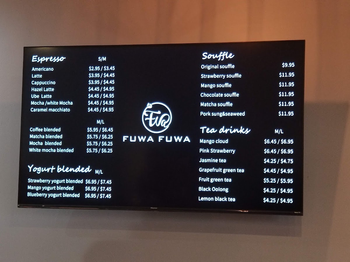 FUWA FUWA Soufflé Cafe Menu
